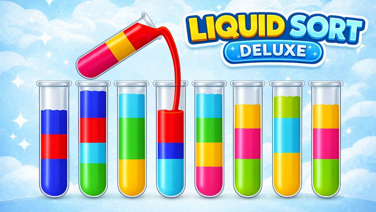 Liquid Sort Deluxe is a relaxing and addictive color sorting puzzle game where you sort colorful liquids into tubes until each tube contains only one color. Plan your moves carefully and challenge your brain with unlimited levels. Unlock an extra tube by watching a short reward ad to make the puzzle easier, or get unlimited time to complete tricky levels.